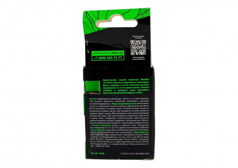 Ароматический автомобильный освежитель воздуха TRIUMPH. В форме квадратного стеклянного флакона с деревянной крышкой. Подвесной аксессуар украсит салон автомобиля и наполнит его нежным ароматом легендарной парфюмерной композиции из французских масел. Необычная и стильная подвеска будет привлекать внимание пассажиров. Масла, входящие в состав, позволяют ему быть насыщенным и в то же время мягким. Освежающий и гармоничный аромат начинается с тонких озоновых ноток, смешанных с искрящимся аккордом экзотического апельсина Юзу, лайма и акватические ноты. В сердце – Базилик. Базу составляют кедр, ветивер и зеленый перец.