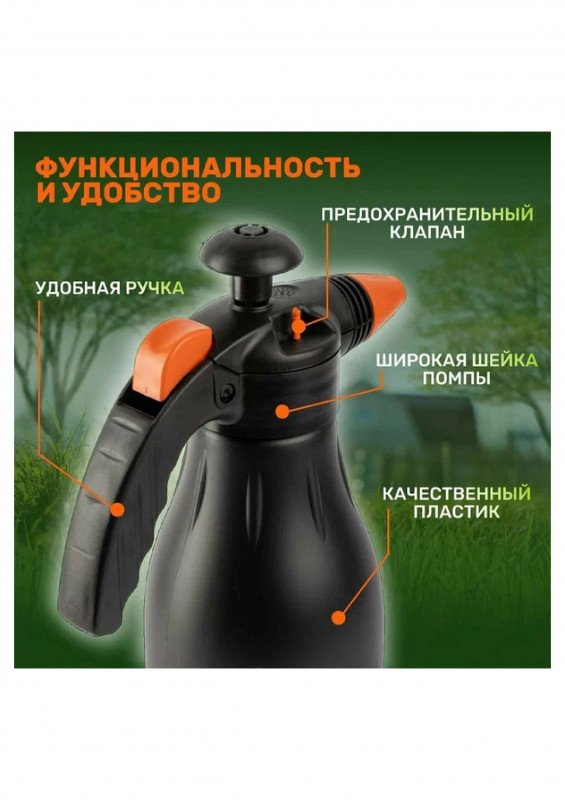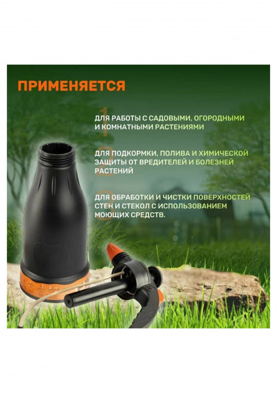 ОсобенностиПригоден для химикатов, регулировка распыления, спусковой клапан давления