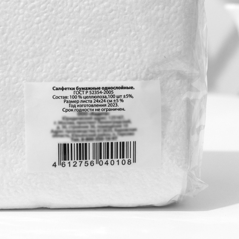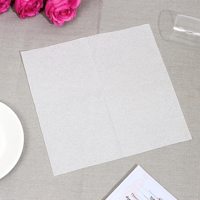 Бумажные салфетки изготовлены из основы санитарно-гигиенического назначения. Бумажное изделие складывается ¼. В упаковке 100 листов