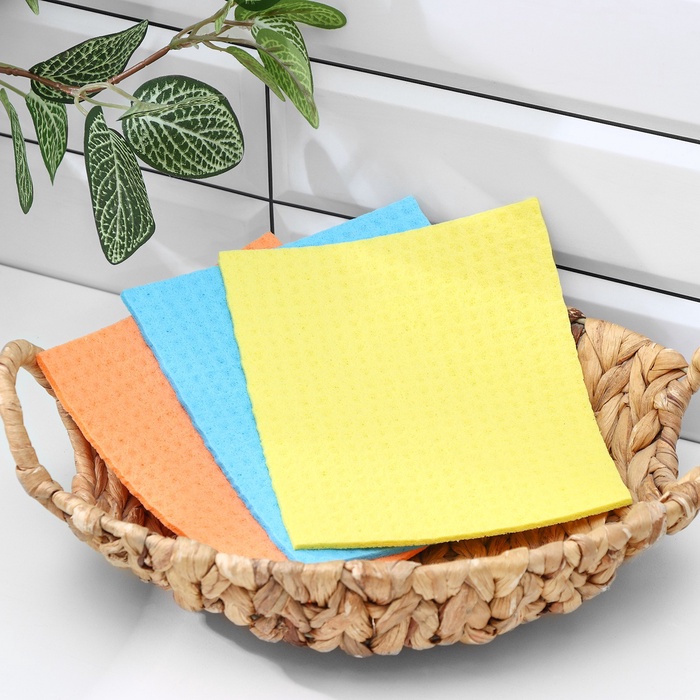 Салфетки из целлюлозы губчатые,тряпки для уборки, 15х17см, 3шт
