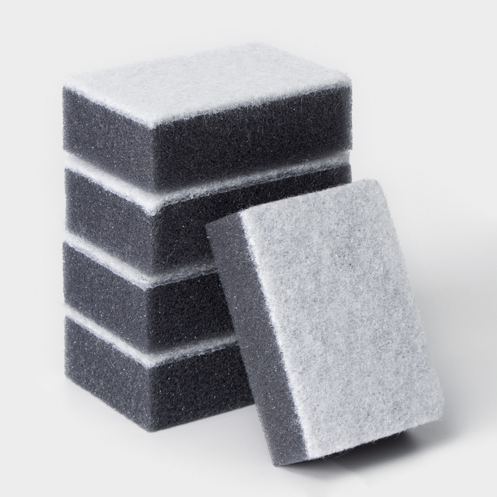 Набор губок для посуды 5шт, с частицами угля, 8,8х6х3см, цвет серый, Raccoon