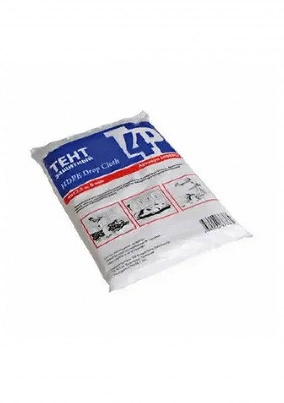Тент применяется для защиты различных поверхностей и предметов от пылевых загрязнений, брызг воды, лакокрасочных и иных отделочных материалов при выполнении ремонтно-строительных работ. Размер: 4 х 12,5 м.