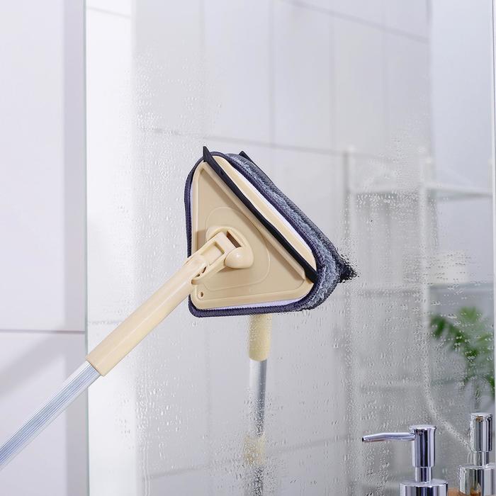 Установите скребок в верхнем левом углу окна и, прижимая к стеклу, ведите швабру сверху вниз, сгоняя воду и грязь, до нижнего края рамы.