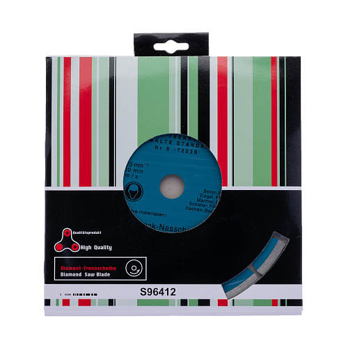 Алмазный диск "Kobalte", сегментированный, имеет параметры: диаметр 230 мм, посадочное место 22,23 мм, толщина диска 1,6мм, толщина алмазного слоя 2,4мм, высота алмазного слоя 10 мм. Изделие произведено из прочной стали, его поверхность поделена на сегменты, что улучшает качество резки и служит дополнительным охлаждением. Используется для сухой резки гранита, мрамора, керамики, бетона и других материалов.