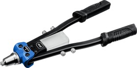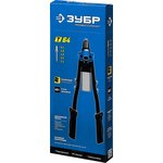 Применяется для установки нержавеющих, стальных и алюминиевых вытяжных заклепок. Способ применения: 1. Просверлите отверстие 2. Установите заклепку в заклепочник, а затем в отверстие 3. Сжимайте и разжимайте рукоятки заклепочника до момента откусывания хвостовика заклепки 4. Заклепка установлена